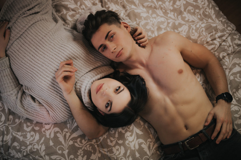 Gdzie wykonujemy takie sesje? Jedną z opcji jest nasze domowe studio w Knurowie. Możemy też wynająć jakiś przytulny apartament. Sesja, którą za chwilkę będziecie mogli podziwiać, była realizowana w jednym z Katowickich apartamentów właśnie. Inną opcją są Wasze mieszkanka, domy. To są Wasze miejsca na świecie-to tutaj czujecie się najswobodniej, nie rozprasza Was zupełnie nic. I do takiego wyboru właśnie będziemy Was najbardziej zachęcać. Kolejną opcją jest plener, wybierzmy się na romantyczny spacer, może wspólny piknik, wyprawa na karuzele. Wiecie, co nas ogranicza? Wyobraźnia