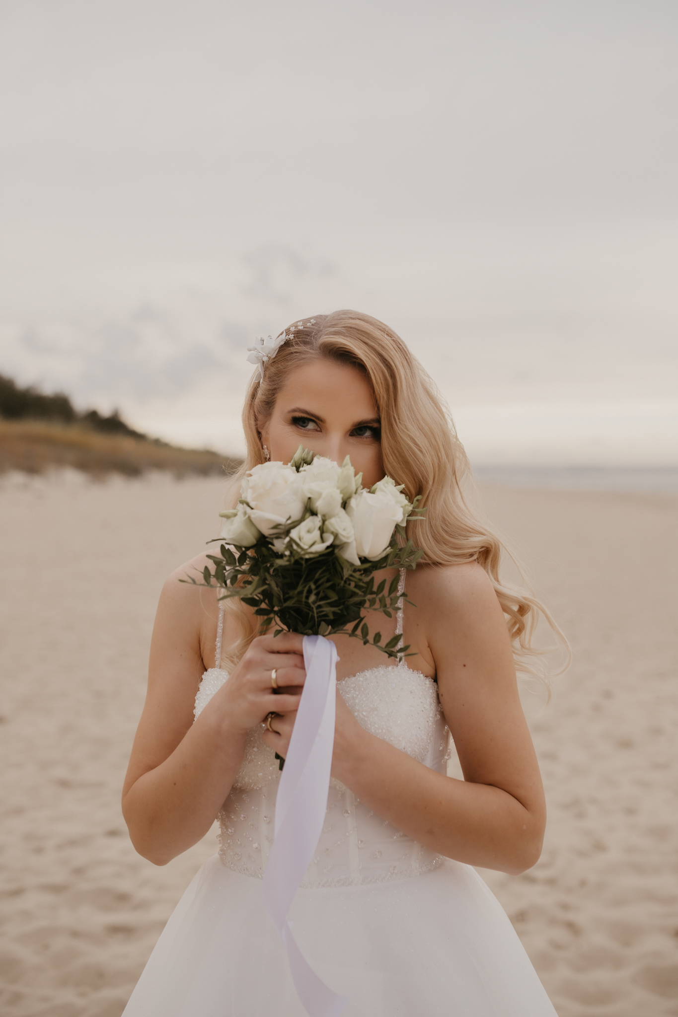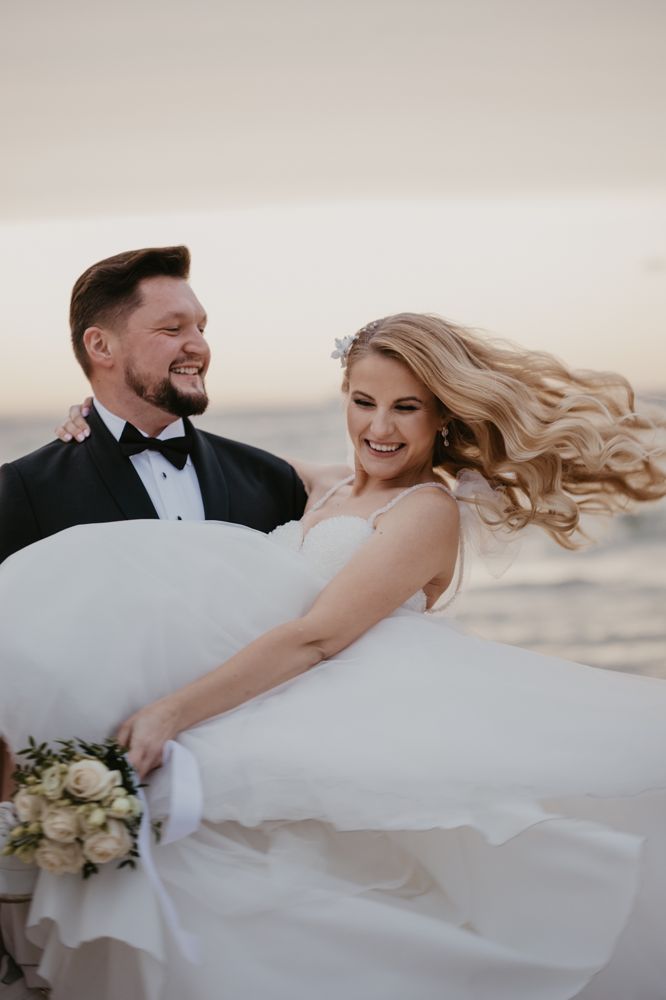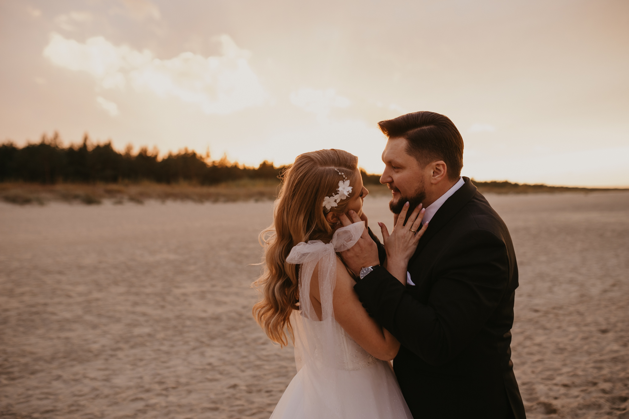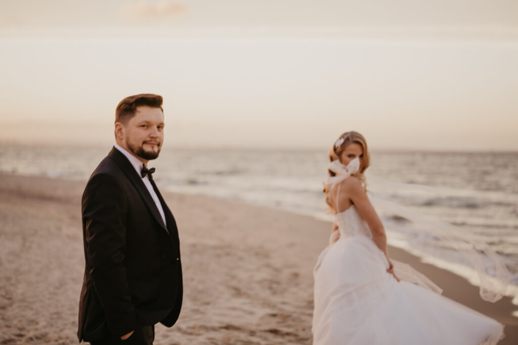 Zaczęłyśmy się stresować, ponieważ razem z Iloną i Marcinem umówiłyśmy się na sesję na plaży przy zachodzącym słońcu. Ilona wymalowana, wyczesana, a samolotu ni widu ni słychu… Skontaktowałyśmy się z parą i powiadomiłyśmy o tym małym problemie, a później pozostało nam tylko czekać. Na szczęście udało nam się dotrzeć do Gdańska na czas i mogliśmy zacząć sesję.
