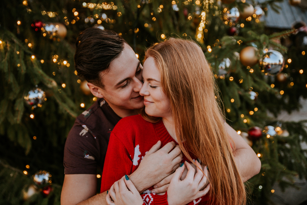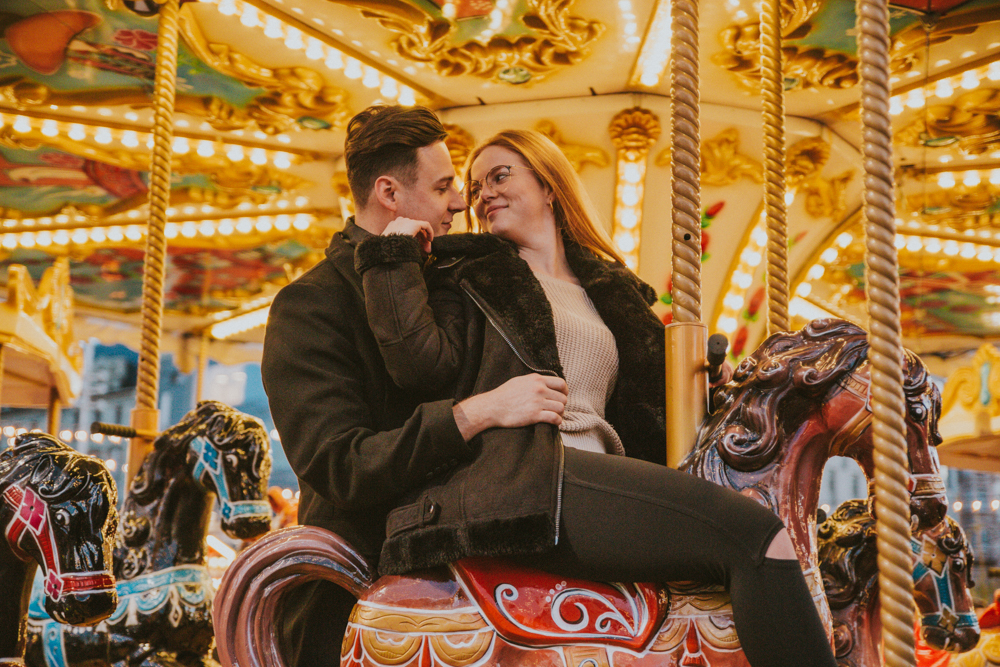 Umówiliśmy się w samym centrum jarmarku. Kinga, jak to kobieta, była pierwsza, a jej druga połówka — Bartek – delikatnie się spóźnił. No ale tak to już bywa z tymi facetami, jak już w końcu kobieta wyrobi się na czas to facet musi się spóźnić.. Wracając do sesji.. Kinga i jej nietuzinkowa uroda dosłownie nas oczarowała! Nic tylko do telewizji z nią! Razem z Bartkiem naprawdę niesamowicie się dobrali. To jak ze sobą współgrali, każde spojrzenie, dotyk, uśmiech.. Pracując z takimi ludźmi, czujesz jak wielkie szczęście masz do ludzi. Nie musieliśmy się nawet porozumiewać słownie. Oni już wiedzieli jak mają się ustawić, co zrobić, gdzie popatrzeć. Może i nikt już nie żyje świętami i każdy żyje już w noworocznych postanowieniach to jednak bardzo chciałyśmy się podzielić jeszcze zdjęciami tej dwójki zakochańców. Mamy nadzieję, że zobaczycie te zdjęcia i umówicie się na taką jarmarkową sesję już na następne święta! 😀
