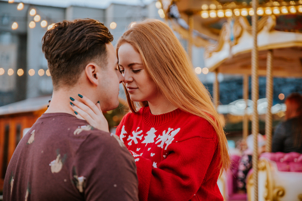 Każda nasza para, która staje przed obiektywem, jest inna. Tym razem na sesje przywędrowali do nas Kinga i Bartek. Nie była to jednak taka 'zwykła’ sesja, ponieważ była to sesja tuż przed Świętami Bożego Narodzenia a odbyła się ona na jarmarku świątecznym w Katowicach! Było kolorowo, światełkowo no i meeega klimatycznie! No bo gdzie można było bardziej poczuć klimat świąt, skoro śniegu ani grama, jak nie na jarmarku!