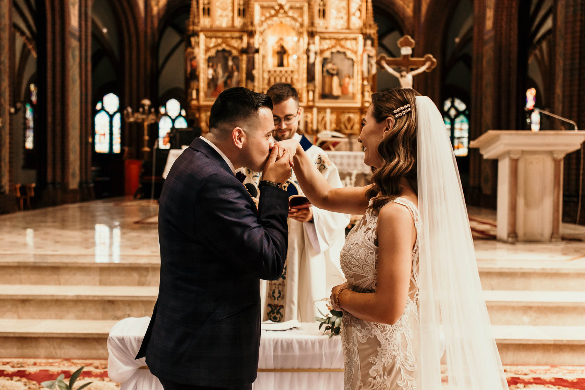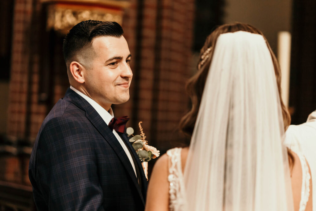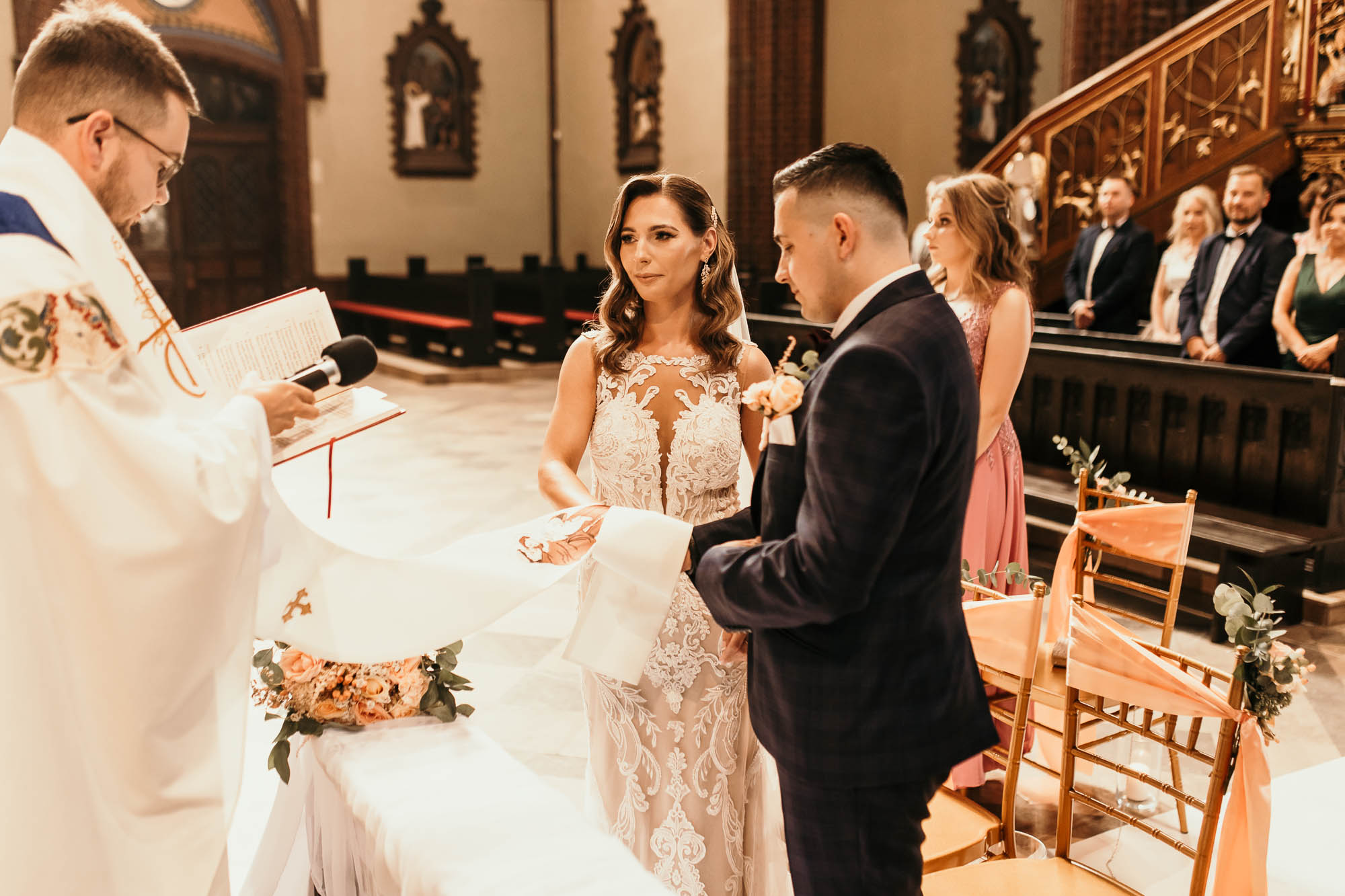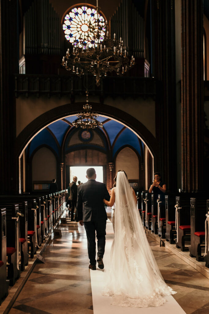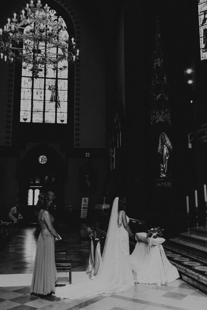 Podczas gdy ceremonia Kasi i Pawła rozpoczynała się w zabytkowych murach Rybnickiej Bazyliki, miłość i tradycja splatały się w jedno. (LSI Keyword: Romantyczne Miejsce na Ślub)
