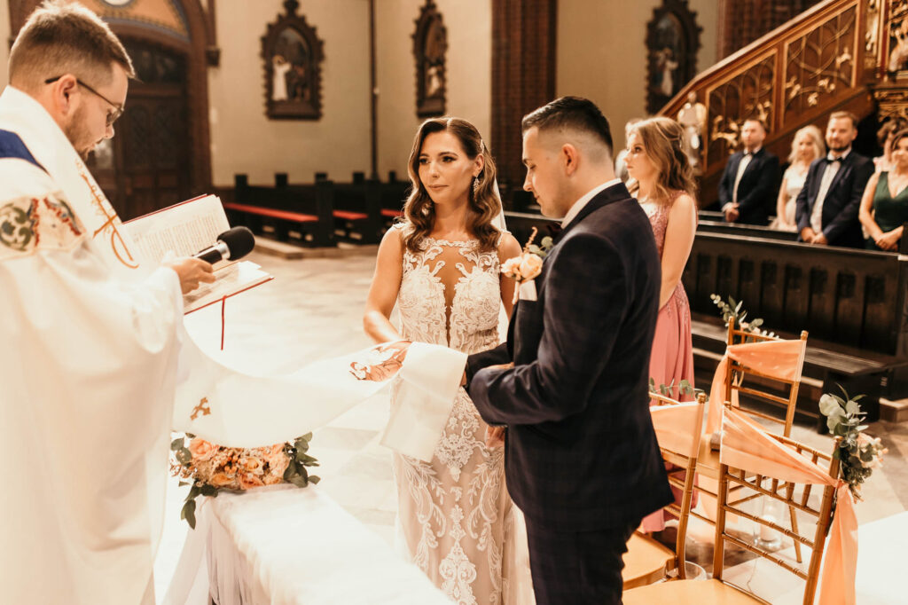 Podczas ceremonii ślubnej w bazylice świętych Apostołów Piotra i Pawła Kasia i Paweł obiecali sobie miłość i wierność na zawsze. Ich uczucie nabrało głębszego znaczenia w tym uroczystym i historycznym miejscu.