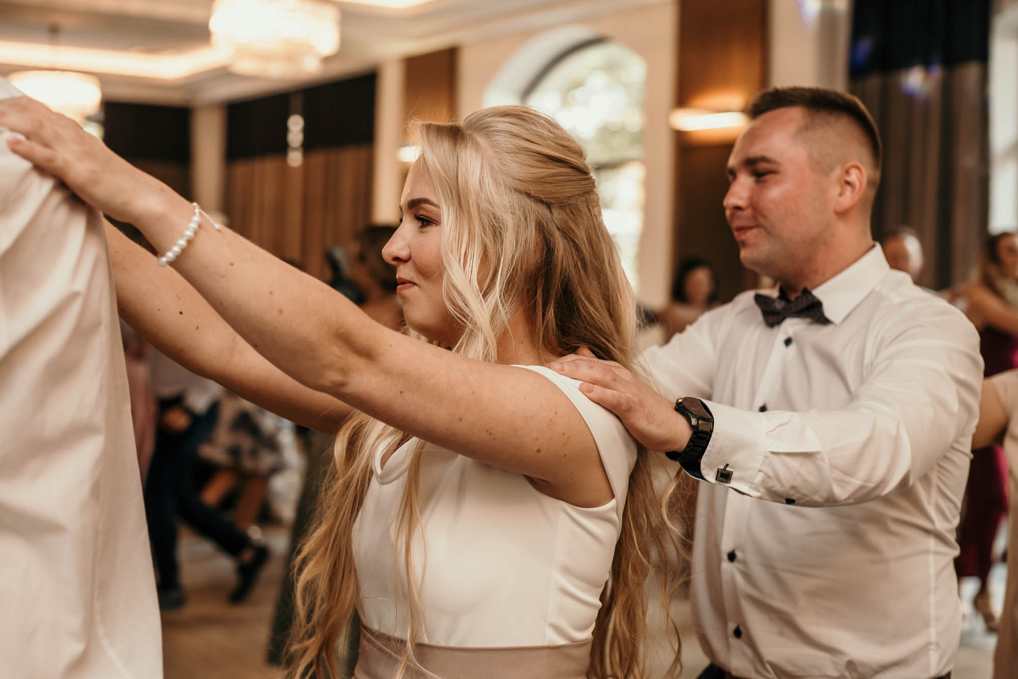 Po uroczystości ceremonii, ślub Kasi i Pawła przeniósł się w radosną zabawę w Kompleksie Dąbrówka, gdzie w powietrzu unosiły się śmiech i muzyka. (LSI Keyword: Miejsce na Przyjęcie Weselne)